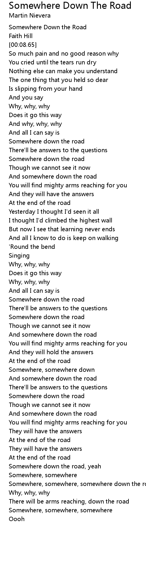Somewhere, somewhere, somewhere down the road |