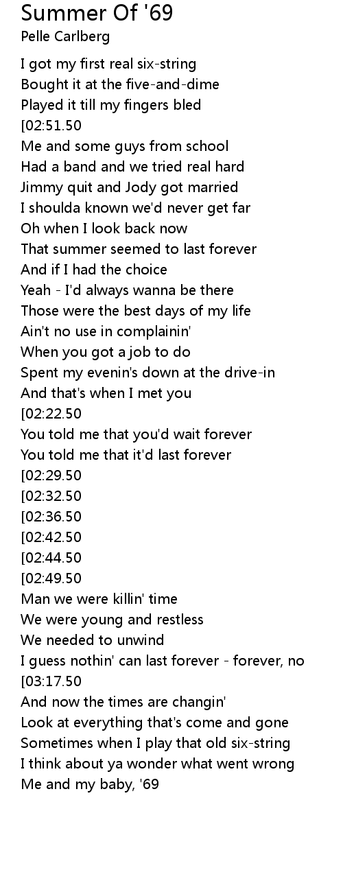 It was the summer of '69 |
