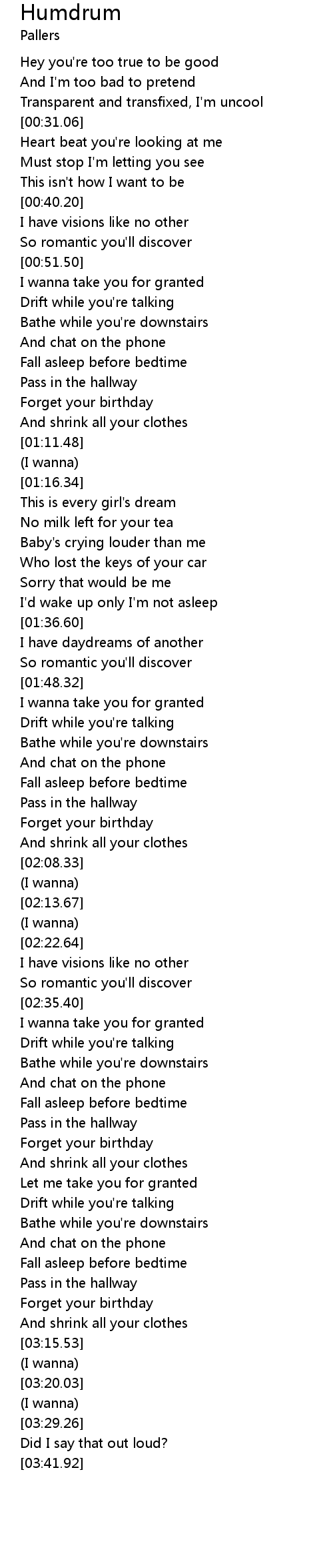 | [02:37.76] | I wanna take you for granted |