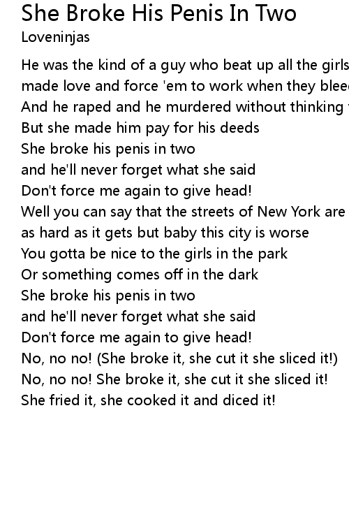 She broke his penis in two |