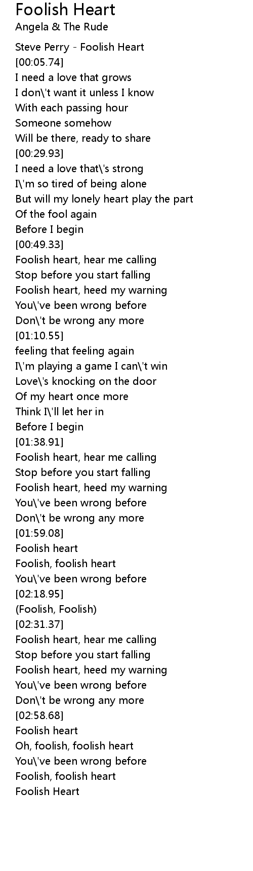 [03:29.99] Foolish Heart