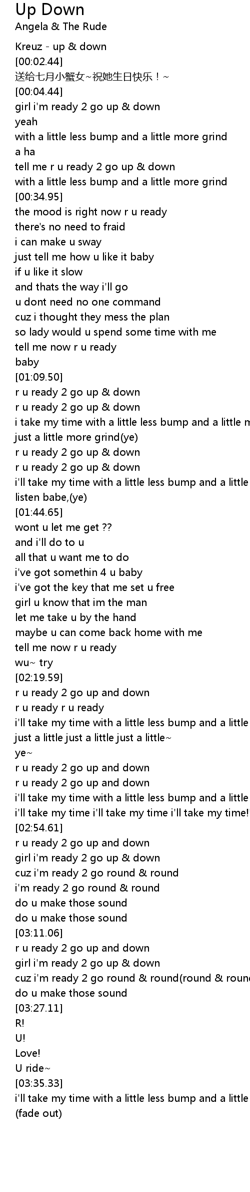 | [00:22.17] | tell me r u ready 2 go up & down |