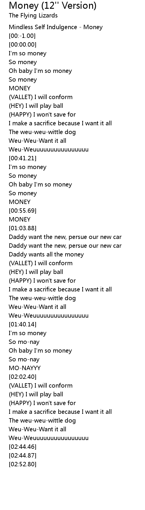 Money (12'' Version) Lyrics