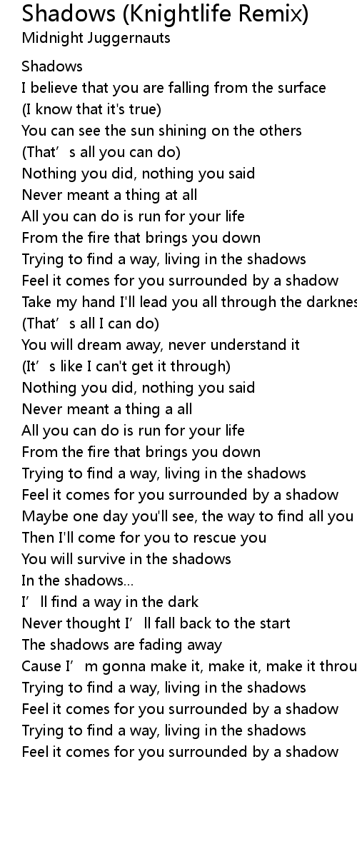 | [01:52.44] | Trying to find a way, living in the shadows |