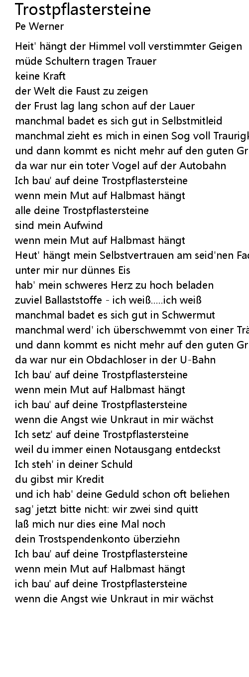| ich bau' auf deine Trostpflastersteine | |