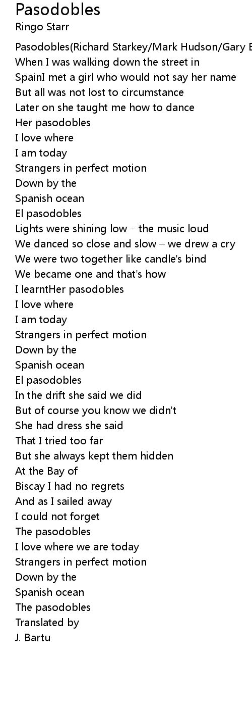| Pasodobles(Richard Starkey/Mark Hudson/Gary Burr/Steve Dudas/Dean Grakal) | |