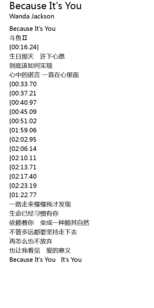 | [01:55.42][00:51.02] | Because It' s You rang wo geng qing xing |