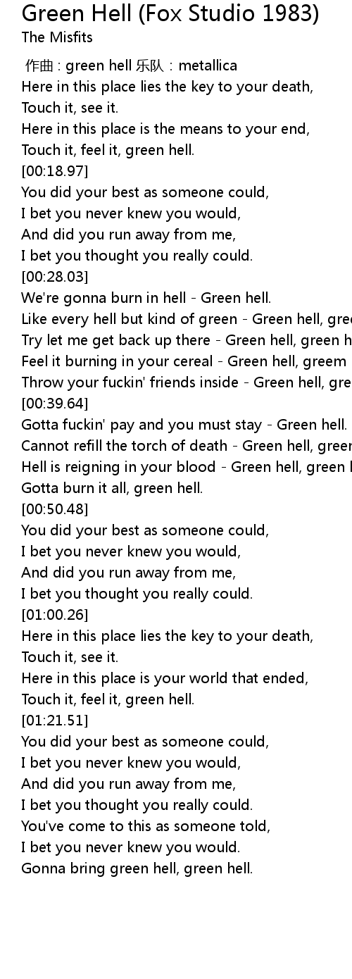 | [00:44.93] | Hell is reigning in your blood - Green hell, green hell. |