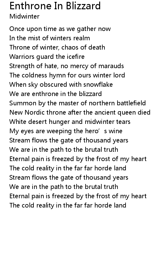 | Song | Enthrone In Blizzard |