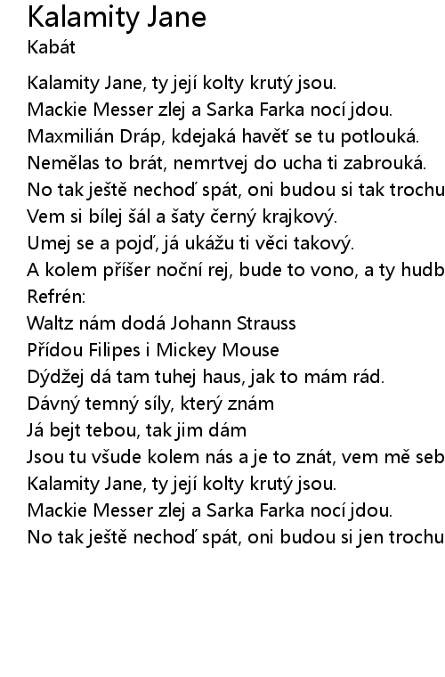 | Kalamity Jane, ty její kolty krut jsou. | |