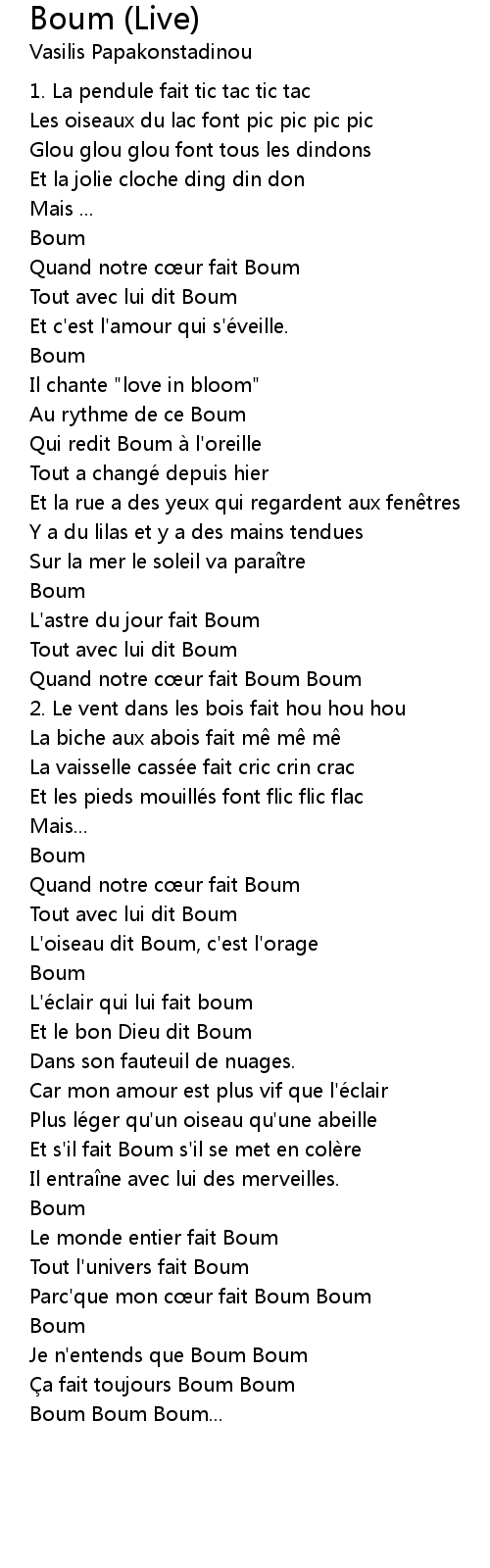 | [00:53.13] | Quand notre c ur fait Boum Boum |