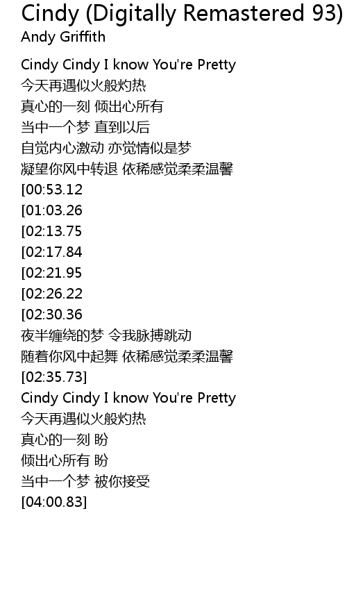 | [03:38.62] | Cindy Cindy I know You' re Pretty |