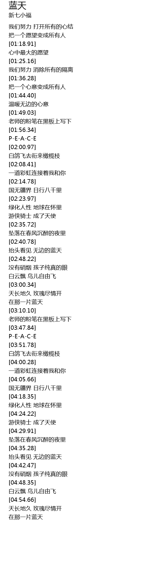 | [04:37.67] | 抬头看见 无边的蓝天 |