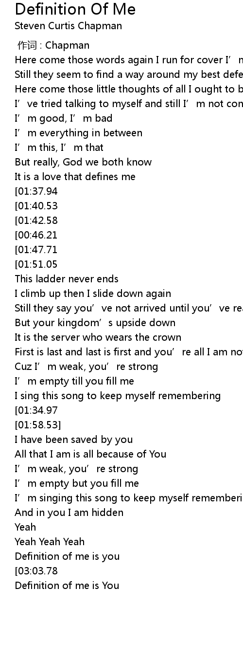 | [02:40.32][01:51.05][00:52.33] | That the definition of me is You |