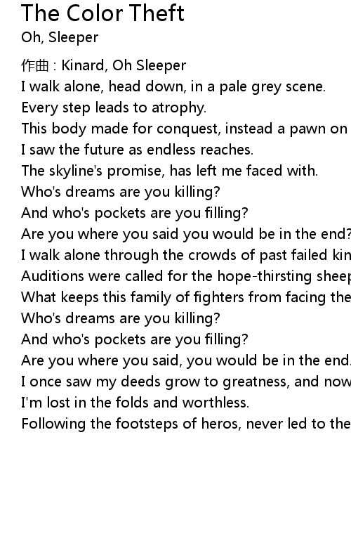 | zuò qǔ : Kinard, Oh Sleeper | |