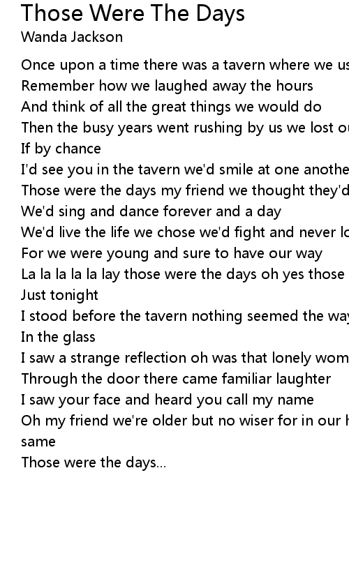 La la la la la lay those were the days oh yes those were the days |