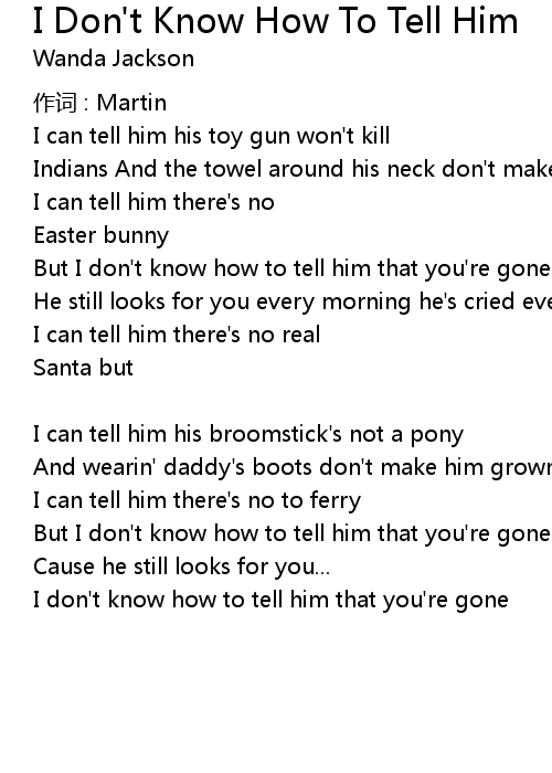 | He still looks for you every morning he' s cried every night we' ve been alone | |