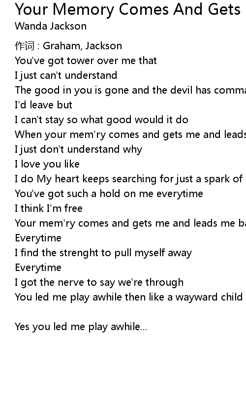 | Your mem' ry comes and gets me and leads me back to you steel | |