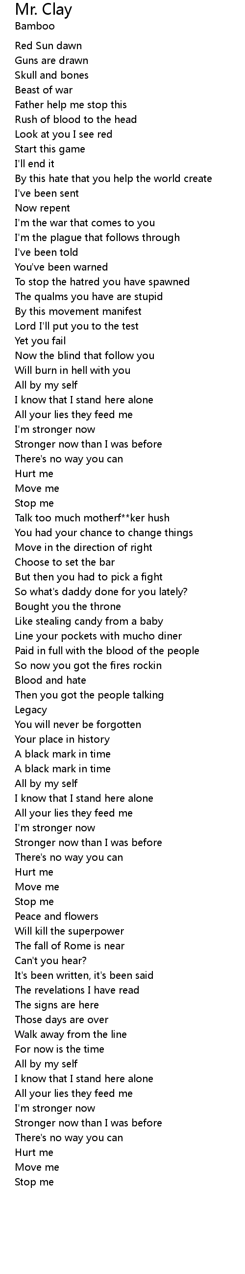 Stronger now than I was before |