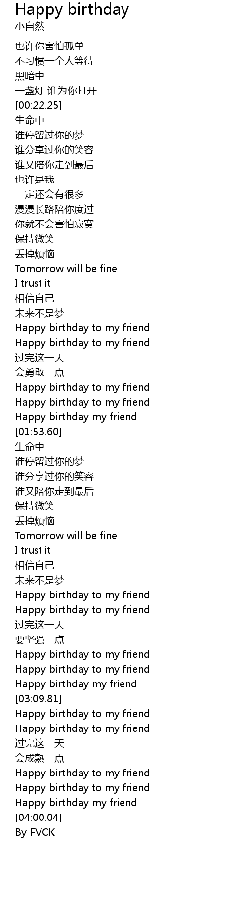 | [03:52.71] | Happy birthday my friend |