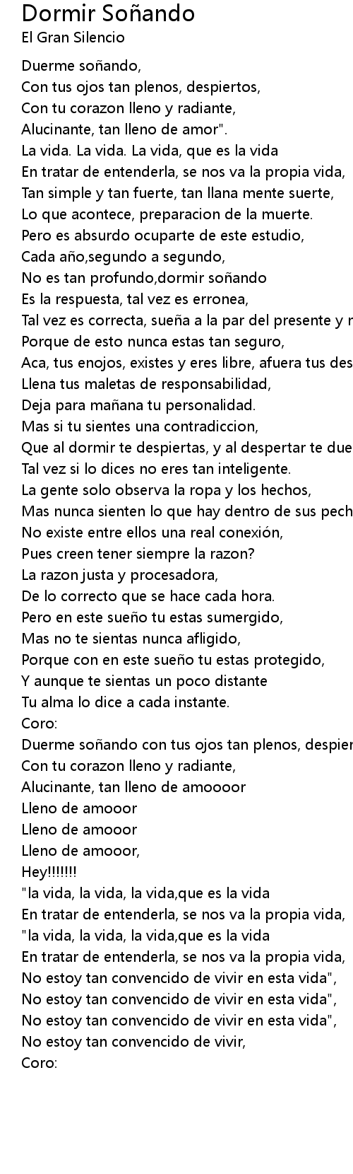 | Duerme soñando con tus ojos tan plenos, despiertos, | |