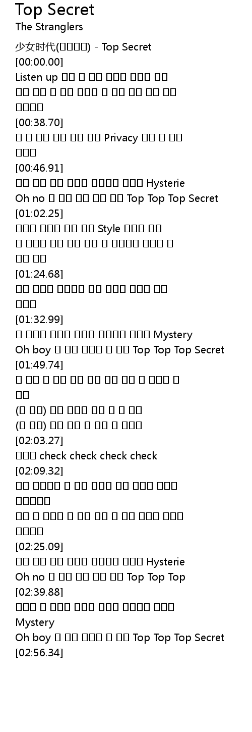 | [02:47.78] | Oh boy 나 없이 풀어야 할 숙제 Top Top Top Secret |