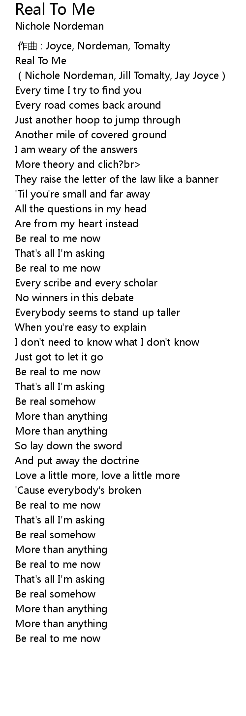 | [00:02.39] | (Nichole Nordeman, Jill Tomalty, Jay Joyce) |