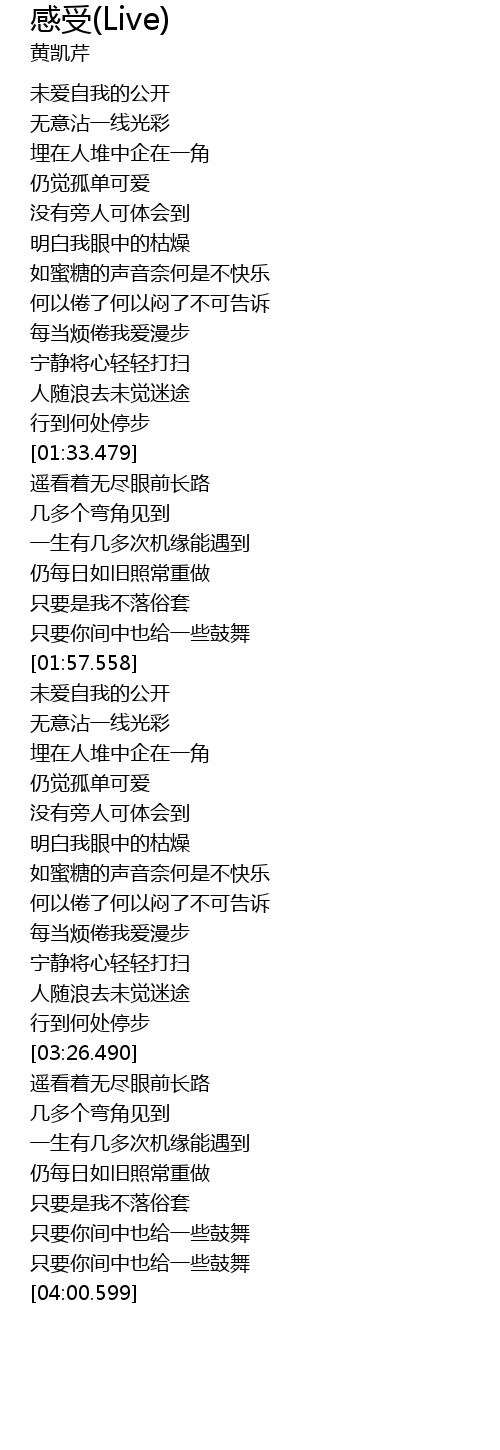 | [01:53.229] | zhǐ yào nǐ jiān zhōng yě gěi yī xiē gǔ wǔ |