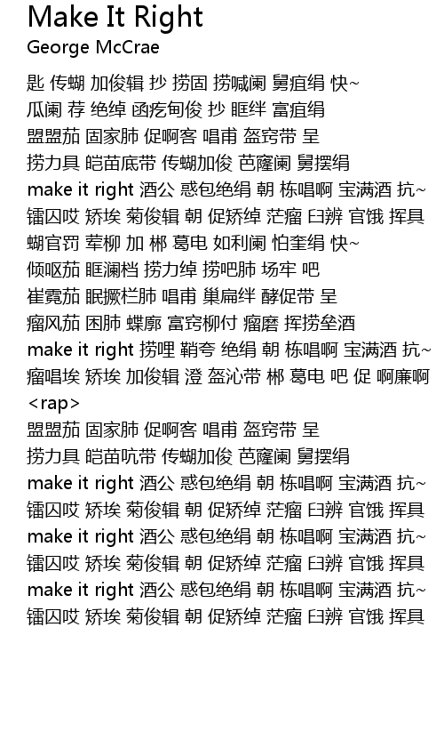 | [03:16.42] | make it right 酒公 惑包绝绢 朝 栋唱啊 宝满酒 抗~ |