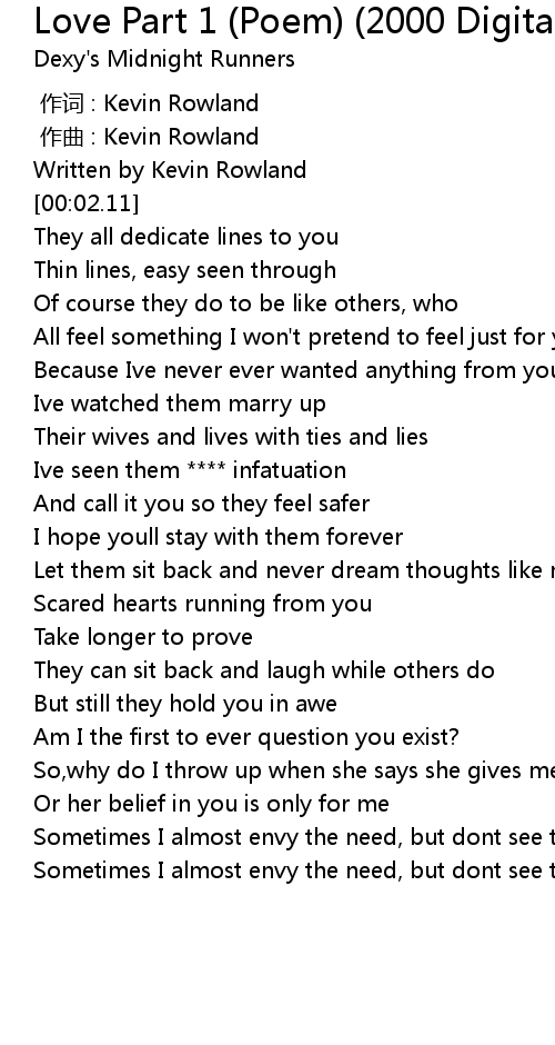 | [00:00.000] | 作词 : Kevin Rowland |