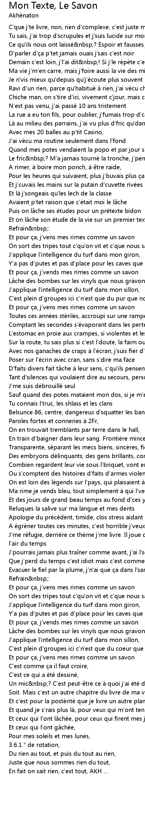 | C' que j' te livre, non, rien d' complexe, c' est juste mon texte c' est l' savon | |