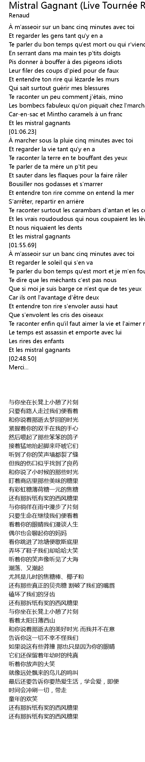 | [01:49.14] | Et les mistral gagnants |
