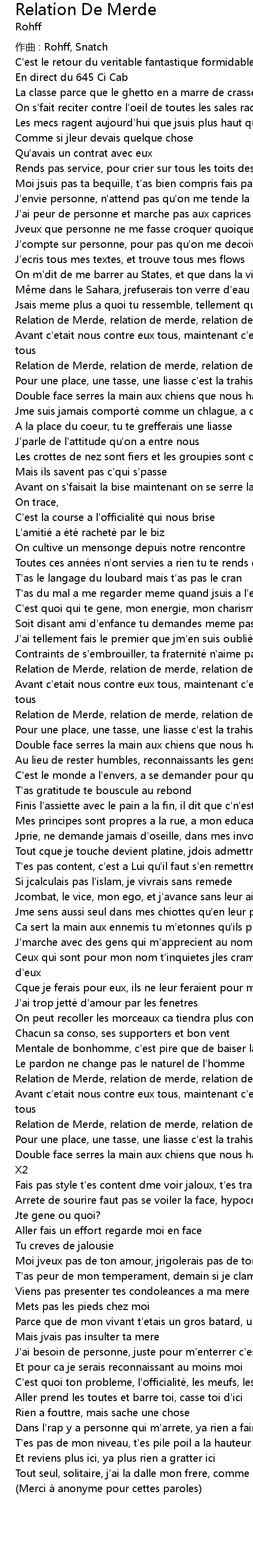 | Song | Relation De Merde |