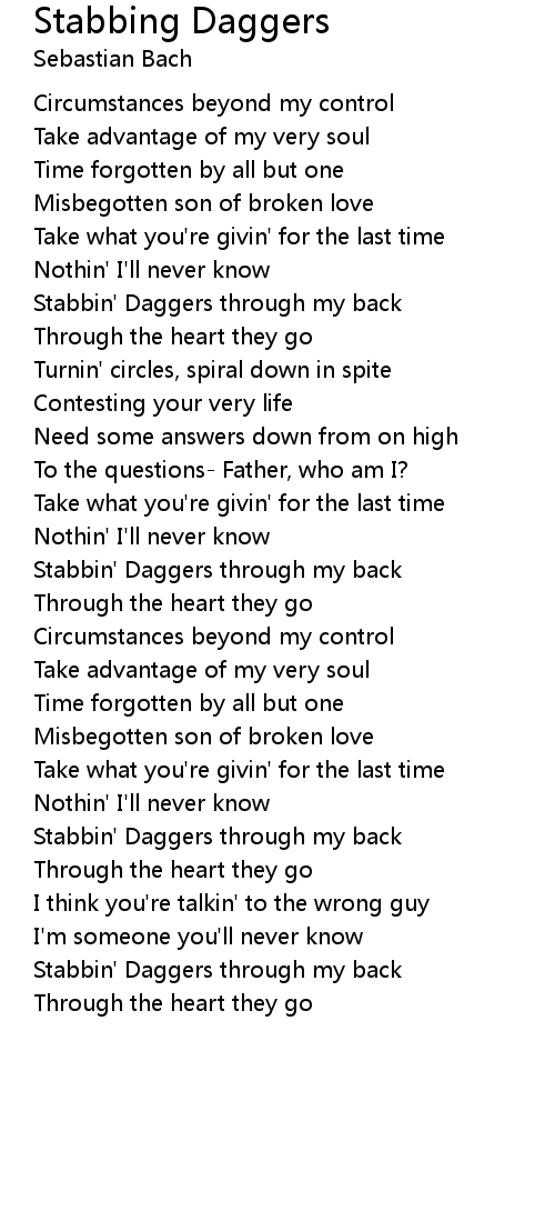 Stabbin' Daggers through my back |