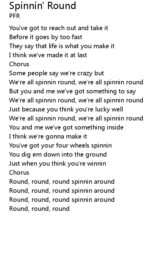 We're all spinnin round, we're all spinnin round |