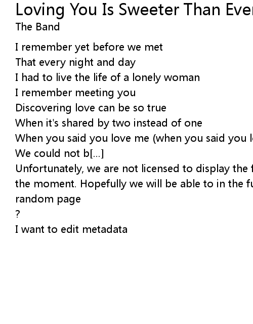 | Unfortunately, we are not licensed to display the full lyrics for this song at the moment. Hopefully we will be able to in the future. Until then, how about a | |