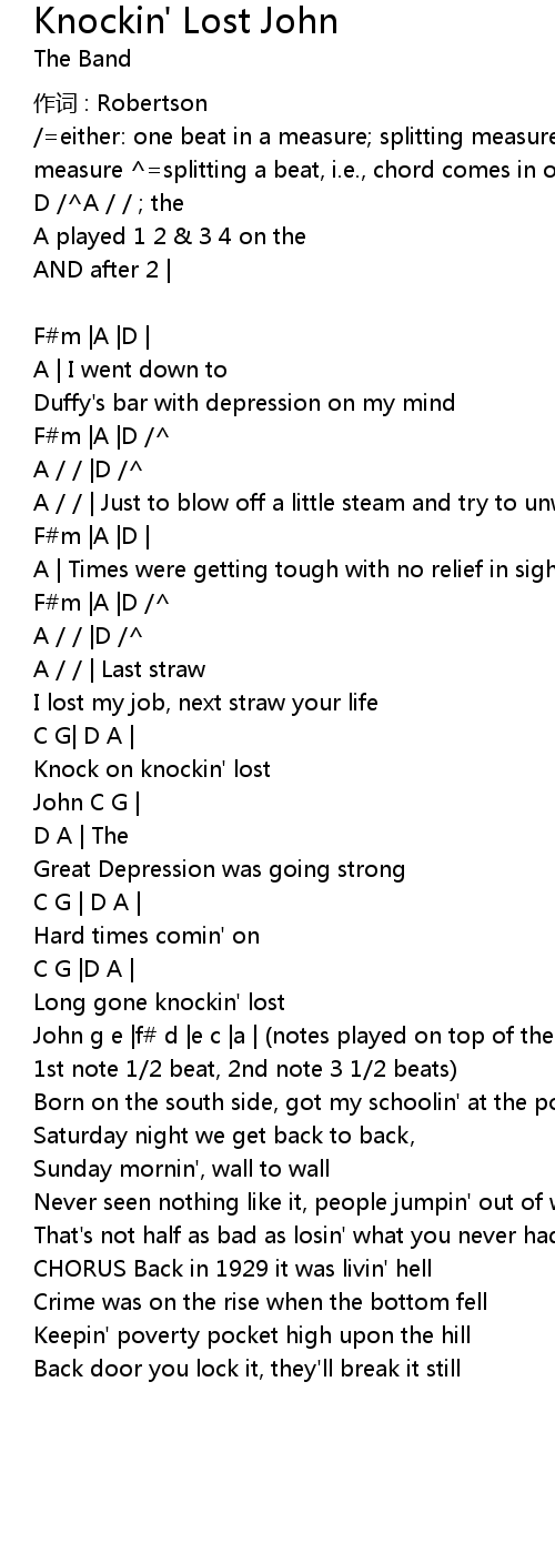 | John g e |f# d |e c |a | (notes played on top of the chord sound E- |D |C |A | 1st note 1/2 beat, 2nd note 3 1/2 beats) | |