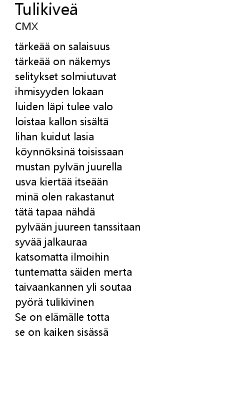 | Song | Tulikiveä |