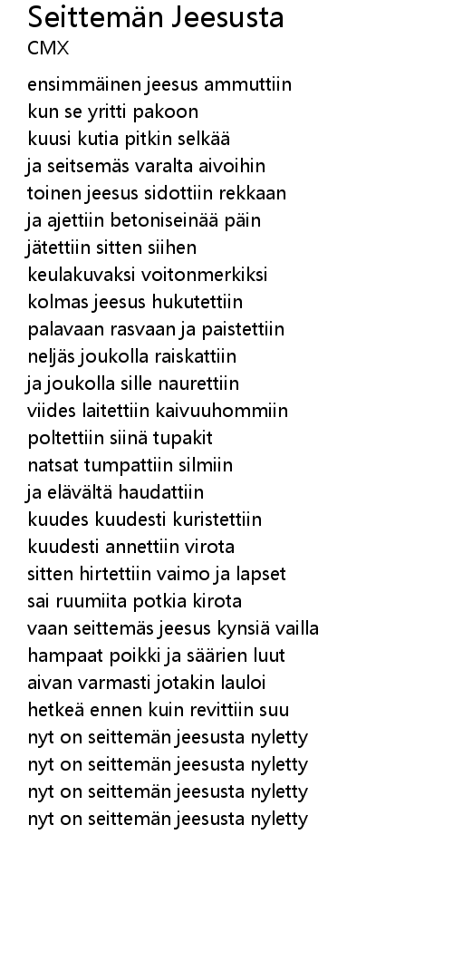 | nyt on seittem n jeesusta nyletty |