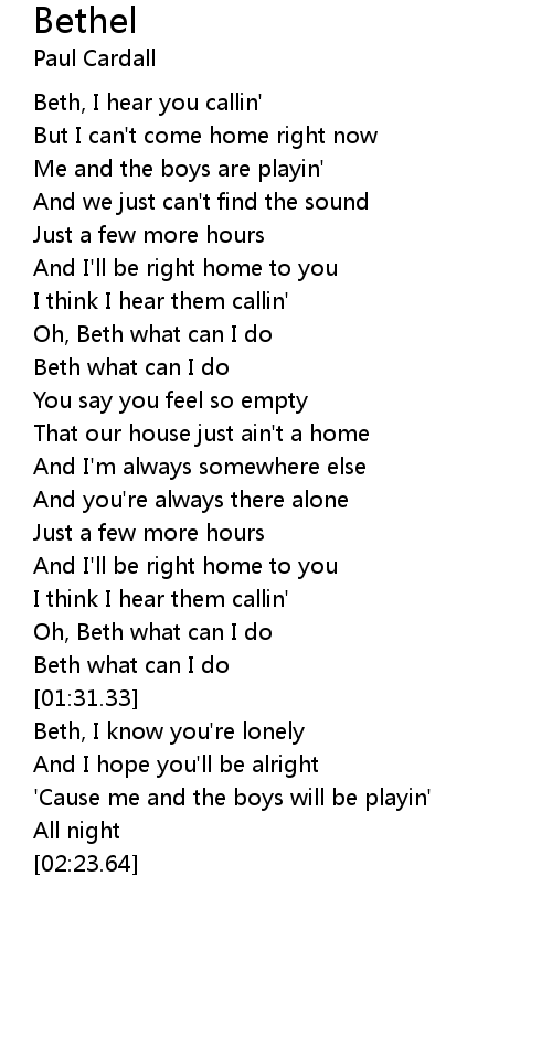 Beth, I hear you callin' |