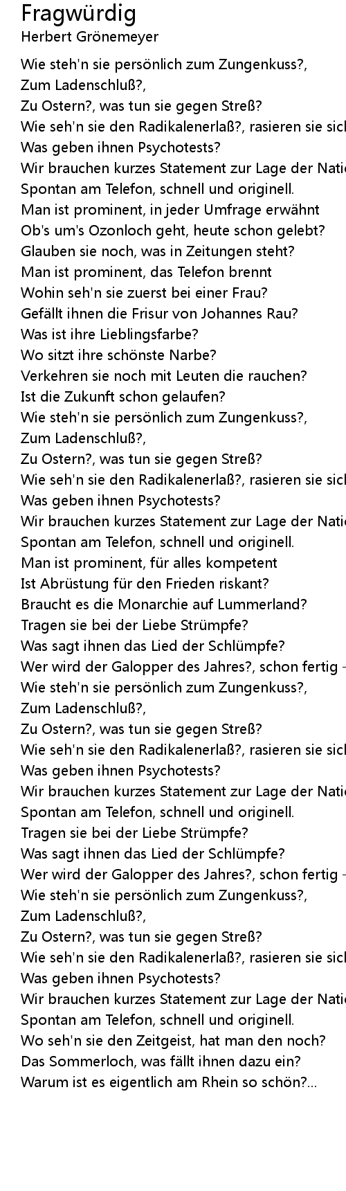 | Wie steh' n sie pers nlich zum Zungenkuss?, | |