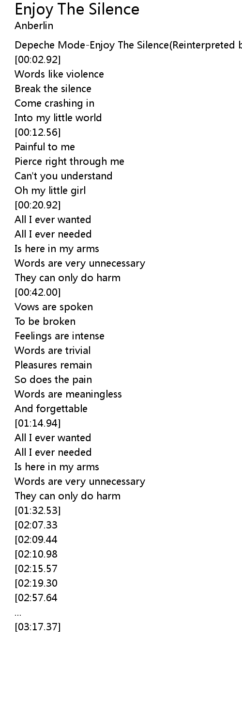 [03:05.69][02:57.64][02:49.12] Enjoy the silence