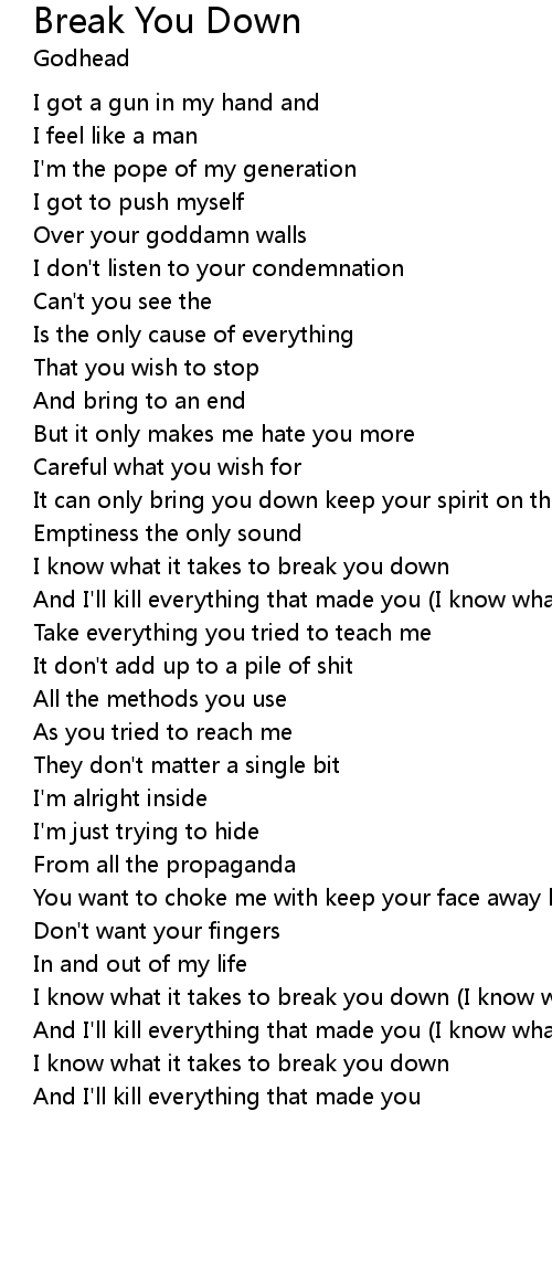 I know what it takes to break you down |