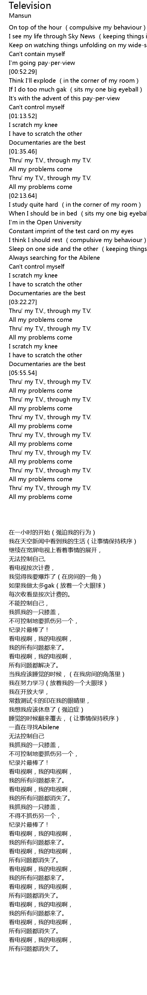 | [06:51.18] | Thru' my T.V., through my T.V. |