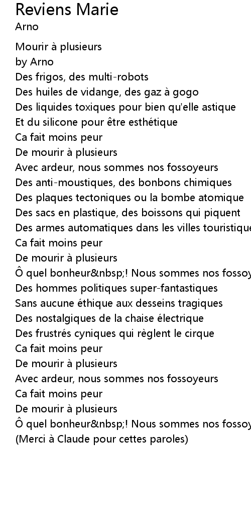 | Song | Reviens Marie |