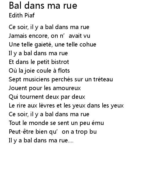 | Song | Bal dans ma rue |