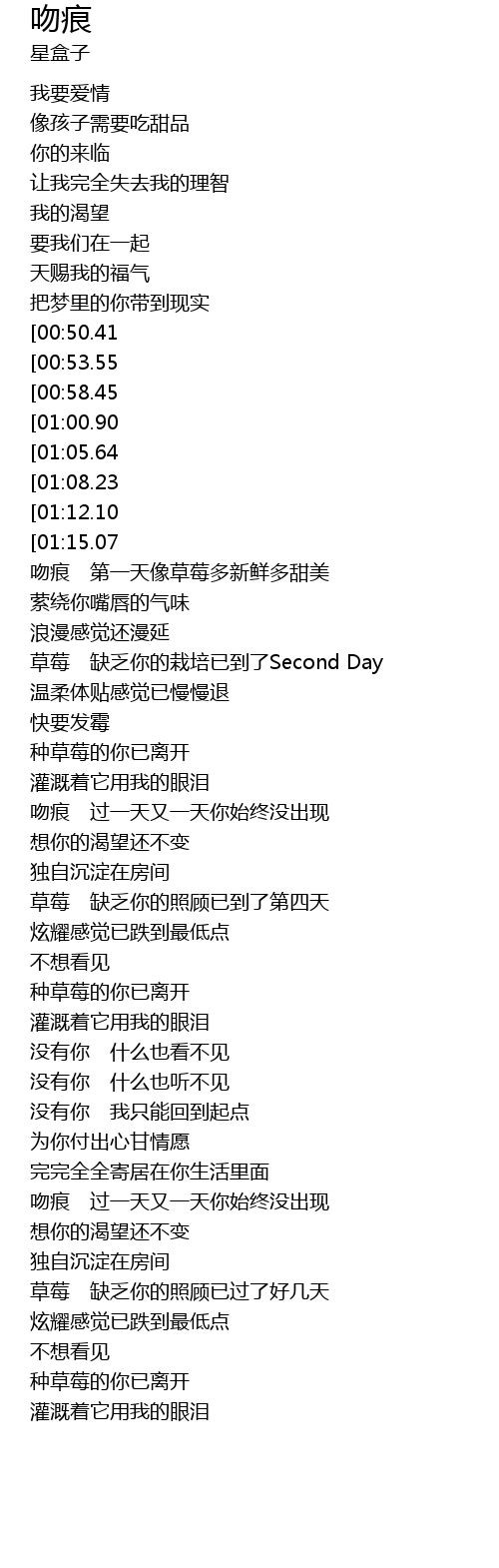 | [03:10.03] | 吻痕 过一天又一天你始终没出现 |