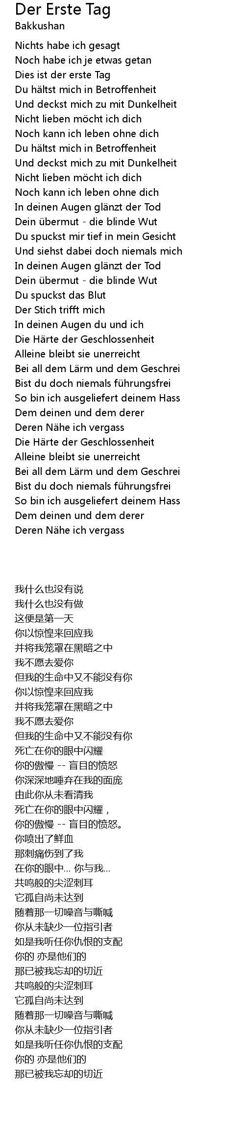 | Song | Der Erste Tag |