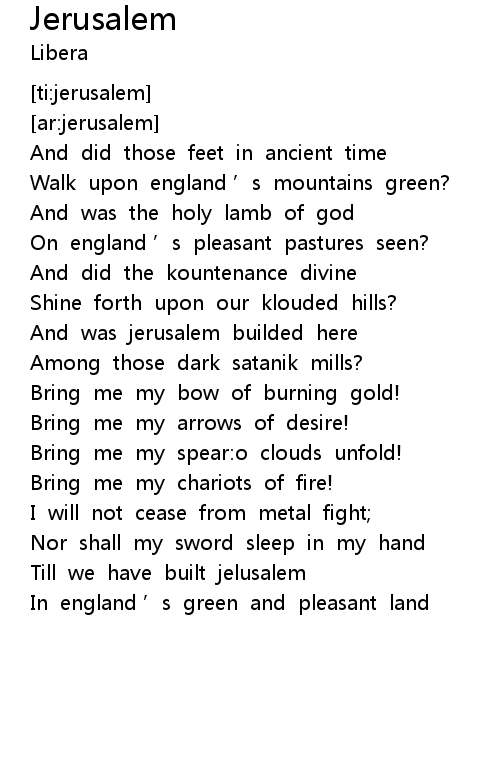 | [00:27.77] | On england ' s pleasant pastures seen? |
