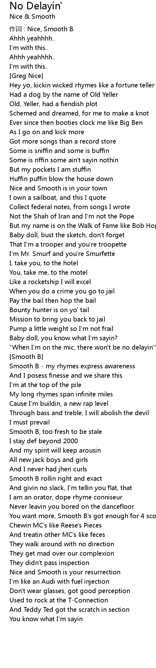 | " When I' m on the mic, there won' t be no delayin'" x3 | |